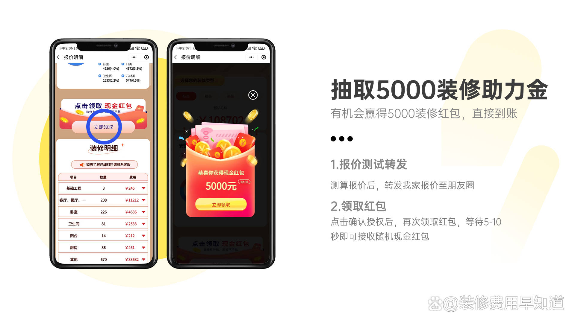 输入城市+房屋面积+风格就能一键免费获取同城装修报价以及不同风格的报价清单明细。