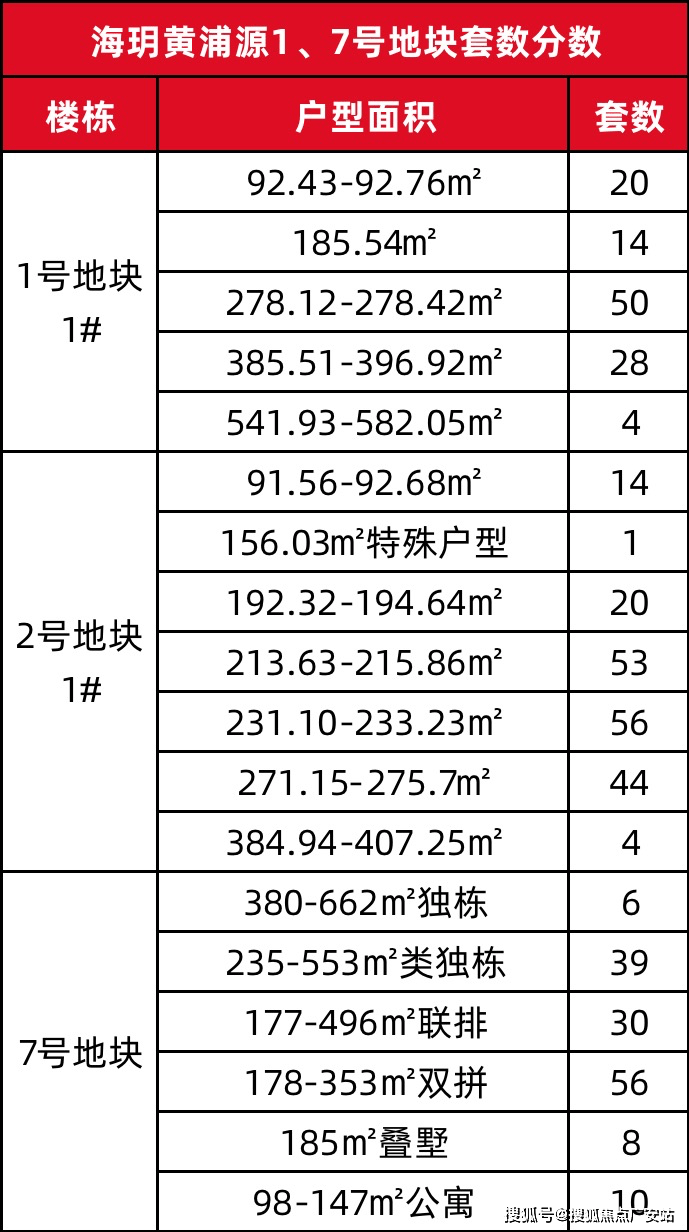 上海建工黄浦新项目「海玥黄浦源」1号地块超高层住宅、7号地块风貌别墅,大致的户型套数分布如下