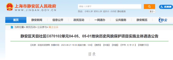 2023年,静安区发布了一则关于历史风貌保护项目实施主体遴选的公告,即