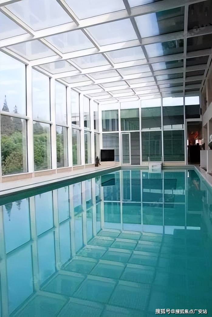 别墅内还有一个当时号称能申报吉尼斯世界纪录的“最妖”设计——18米长的游泳池造在2楼,池底用的是一片47厘米厚的大玻璃,站在一楼大厅的走道上,抬头便是流光水影。