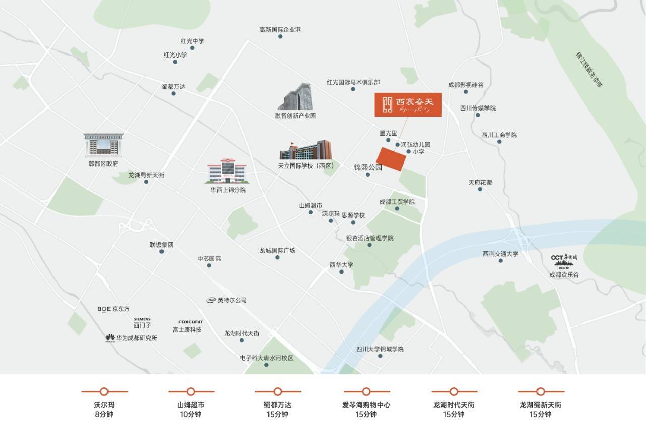 [商业配套]:蜀都万达广场、龙湖时代天街、沃尔玛、华侨城-欢乐谷、山姆超市等,尽享一线成都繁华生活。