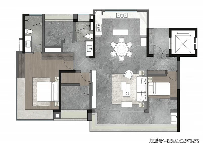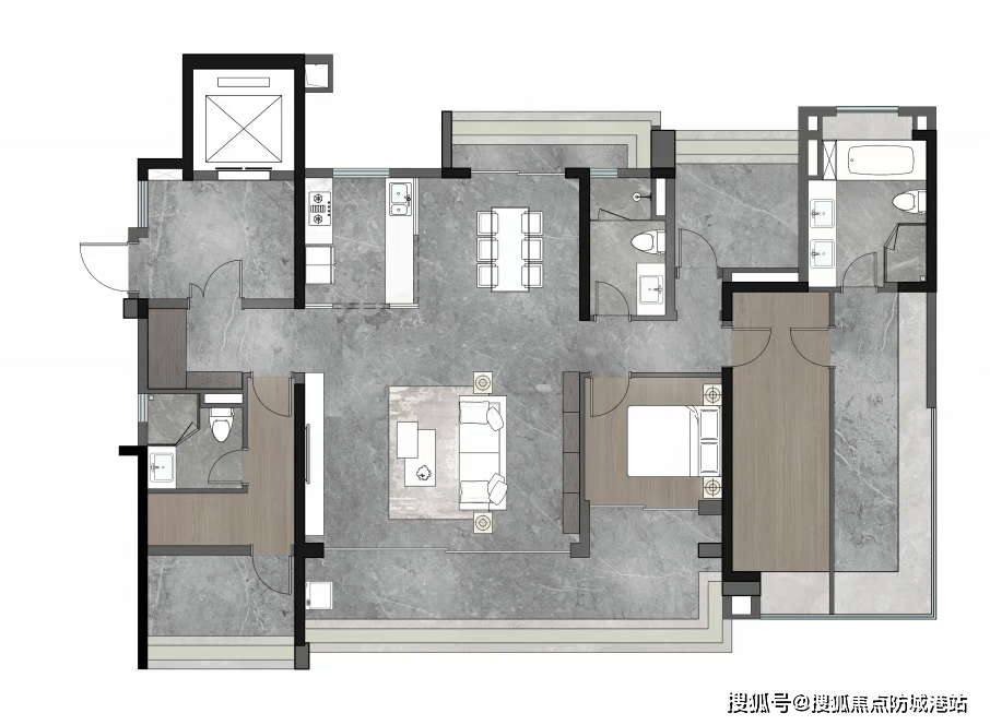 180㎡五房三卫:独立家政间 + 储藏室,客厅挑高 3.1 米,空间开阔通透,总价约 1180 万。