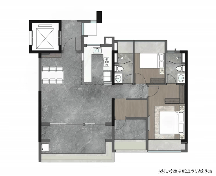 105㎡三房两卫:南向三开间,主卧套房设计,带独立衣帽间和卫生间,得房率 86%,总价约 660 万;