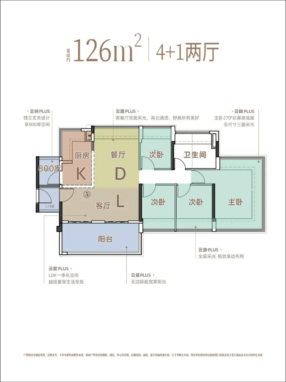 126㎡四房两厅三卫:南北双通透,客厅面宽 4.8 米,空间开阔大气,实测使用面积 116㎡,适合高端改善家庭,彰显品质生活。
