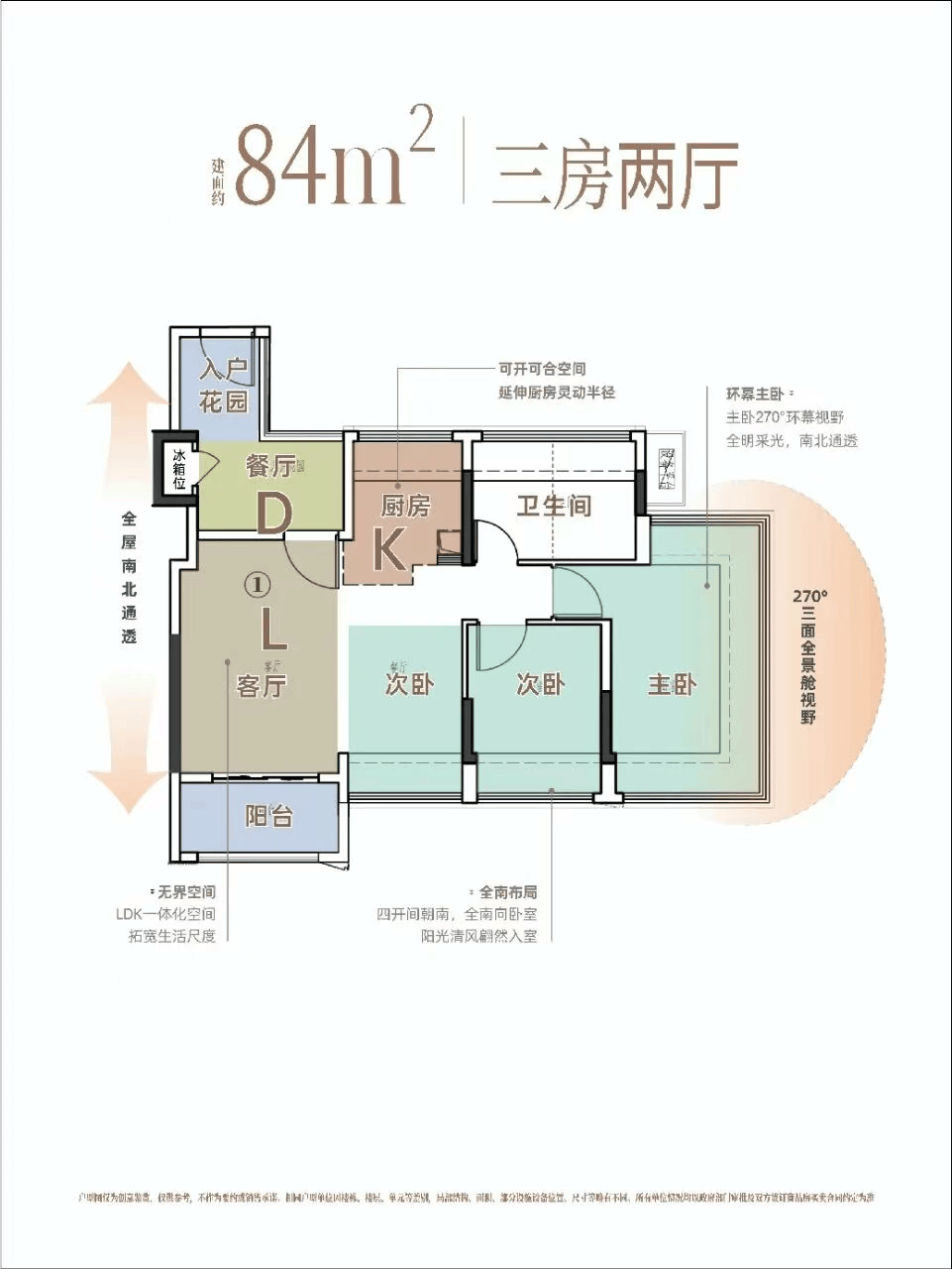 83㎡三房两厅一卫:四开间朝南,主卧带 270° 转角飘窗,实测使用面积 76.4㎡,相当于传统户型 90㎡的使用空间,总价 350 万起,性价比极高,适合刚需家庭。