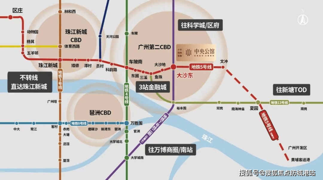 保利中央公馆周边拥有地铁 5 号线 号线双地铁配套,距离地铁 5 号线 号线换乘站大沙东站步行距离仅 550 米,该站点已投入运营,可快速通达广州各核心区域。根据广州市地铁集团 2026 年最新规划,地铁 5 号线东延段(文冲 - 黄埔客运港)将于 2026 年 6 月通车,项目业主可通过大沙东站乘坐 5 号线 站直达北京路商圈,通勤时间缩短至 25 分钟以内。