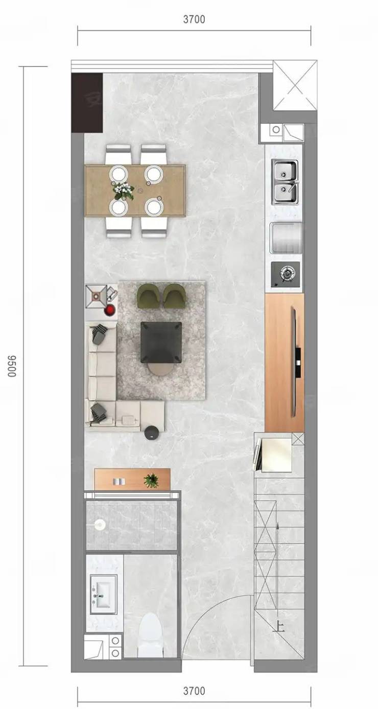 开间3.7米*进深9.5米,其中开间可达3. 7米的超大采光面,要达到这个标准,住宅起码要100平米左右才能达到;