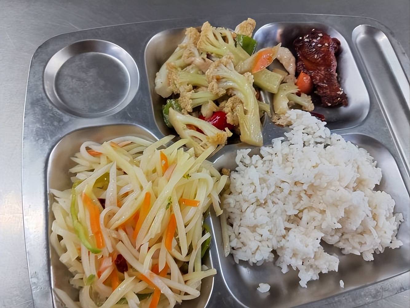 更重要的是,校餐也升级了,从最初的一碗白米饭配咸菜,变成了标准营养午餐,肉蛋奶样样不少,听起来像广告词,但这是真事。