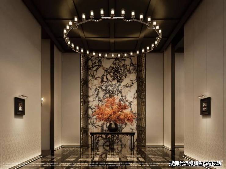 材料选用意大利石材,BVLGARI HOTEL大理石,铝型材塑型红,四层金属网格墙面以及梧桐叶金属屏风等,打造独属老静安的记忆符号,高奢定制,市区豪宅调性拿捏!