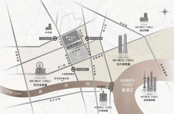商业配套:周边有星荟中心、宝华城市广场等商业,另规划有四川北路18号街坊,作为虹口生活新地标,包含超甲级写字楼,上海约14,000㎡的文化博物馆。